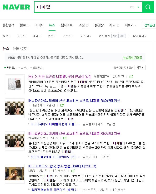 현재 니피엘은 2019 동남아시안게임 메인스폰서를 확정지으며 영양과 브라이트닝 개선에 효과가 있는 ‘화이트 캐비아 리미티드 에디션 마스크팩’을 런칭 했으며, 매니파퀴아오도 큰 관심을 가지고 있는 남녀노소 활력 증진과 피부 미용에 효과가있는 캐비아진(캐비어진)을 출시 예정이다.